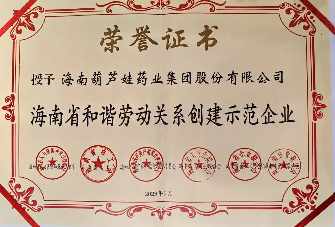 人生就是博药业集团获评“海南省和谐劳动关系创建示范企业”
